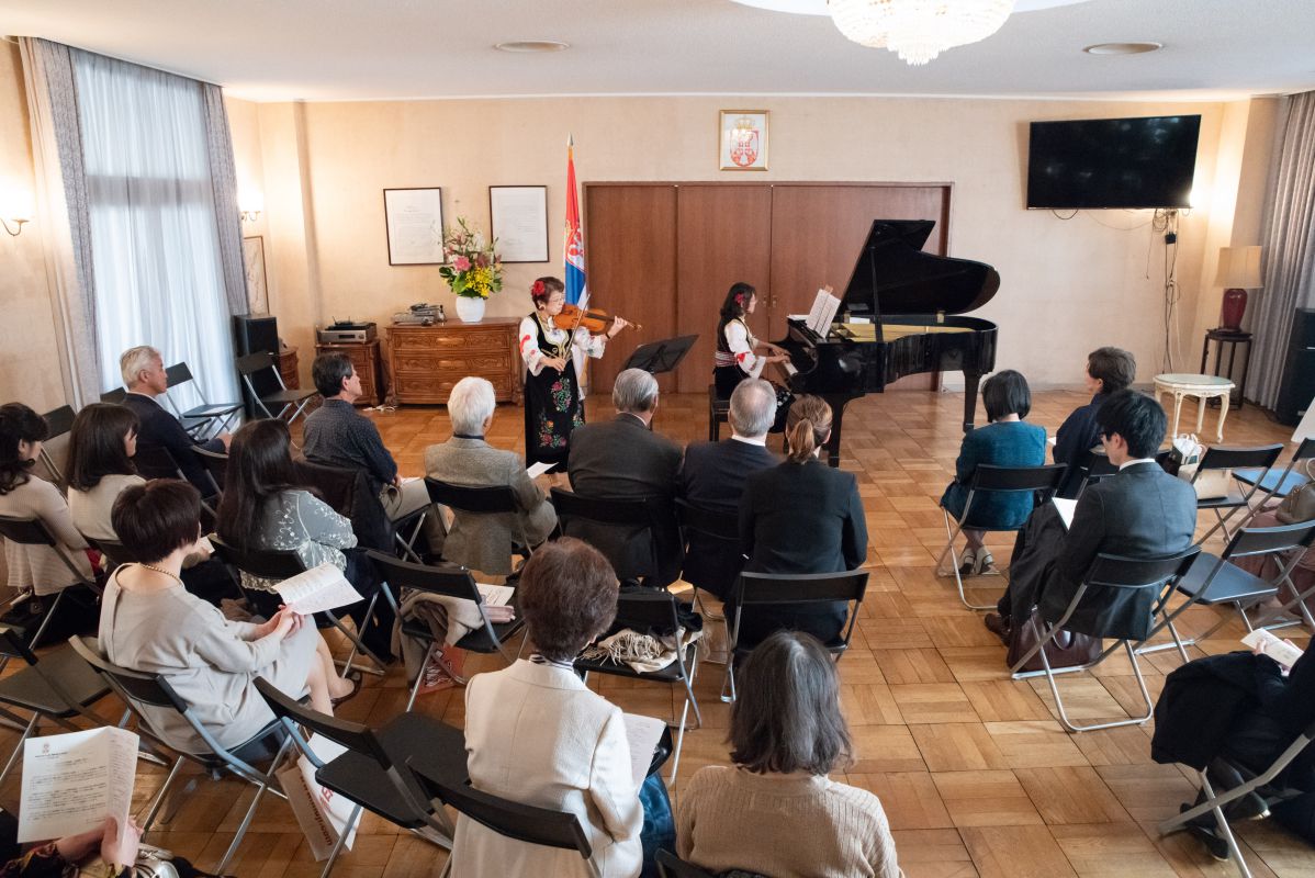 3月15日(金)在京セルビア大使館を会場に無事終了しました。「セルビア音楽祭」コンサートは、セルビア共和国大使、ネナド・グリシッチ閣下ご臨席の下、ご祝辞を頂いた後、セルビアの曲17曲、セルビア縁の曲2曲を6名の演奏者でご紹介致しました。